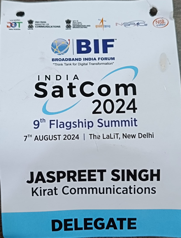 Jaspreet Singh participated as a Delegate in the 9th INDIA SATCOM 2024 Summit at The Lalit New Delhi on 7th August 2024 organised by Broadband India Forum. The Special Guest of Honour for this occasion was Ms. Madhu Arora, Member (Technology), Department of Telecommunications (DoT). The discussion was centred around how Satellite Communication can play a significant role in bringing the affordable connectivity in the rural areas.