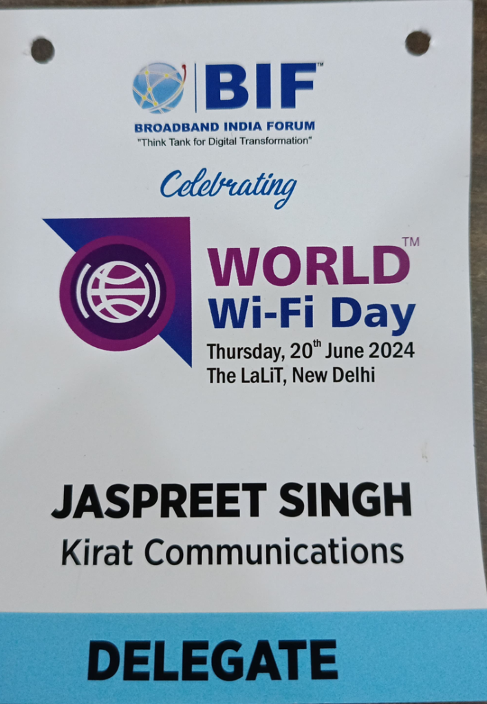 Jaspreet Singh participated as a Delegate in the World Wi-Fi Day, Thursday 20th June 2024, The Lalit, New Delhi organised by Broadband India Forum at The Lalit, New Delhi on 20th June 2024. The Chief Guest for the event is Prof. Abhay Karandikar, Secretary, Department of Science & Technology, Government of India.